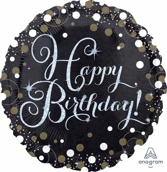 18 inch Mileston Sparkling Happy Birthday Balloon. Helium filled balloons wth ribbon. WEIGHT NOT INCLUDED