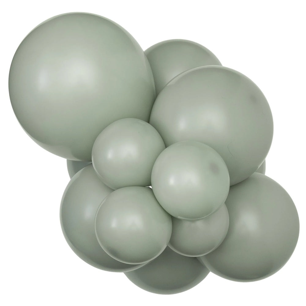 18 inch Sempertex Pastel Dusk Laurel Biodegradable Latex Balloon. Helium filled balloons Hi-Float treated to extend float time with ribbon. WEIGHT NOT INCLUDED