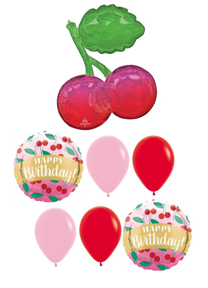 Cherries Birthday Cherry Balloons Bouquet with Helium and Weight