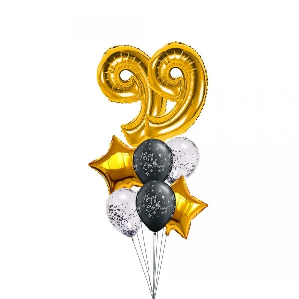 Gold Number Pick An Age Birthday Stars Confetti Balloons Bouquet