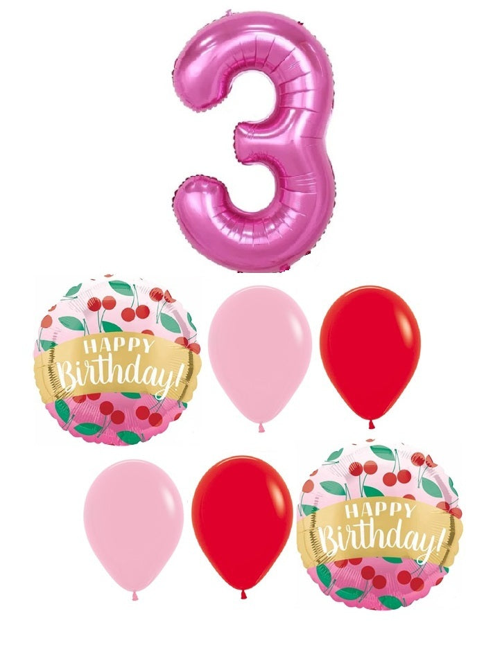 Cherries Birthday Pick An Age Pink Number Balllons Bouquet with Helium