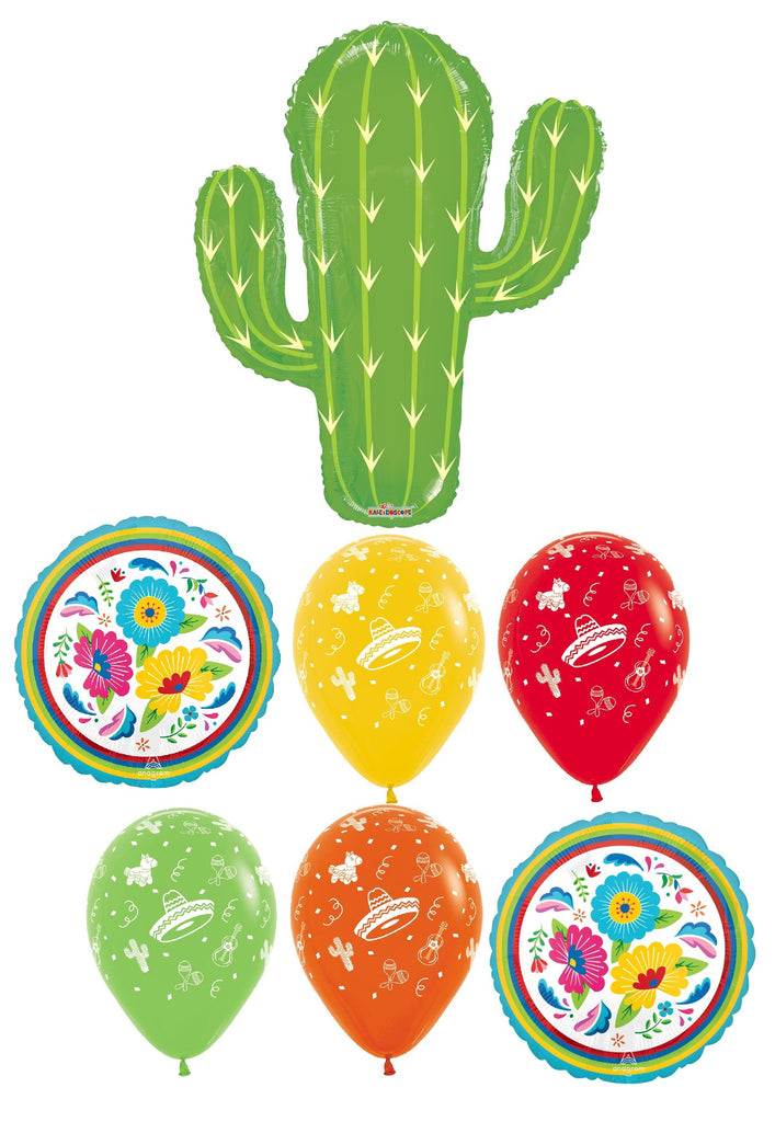 Fiesta Cactus Flower Balloons Bouquet with Helium Weights