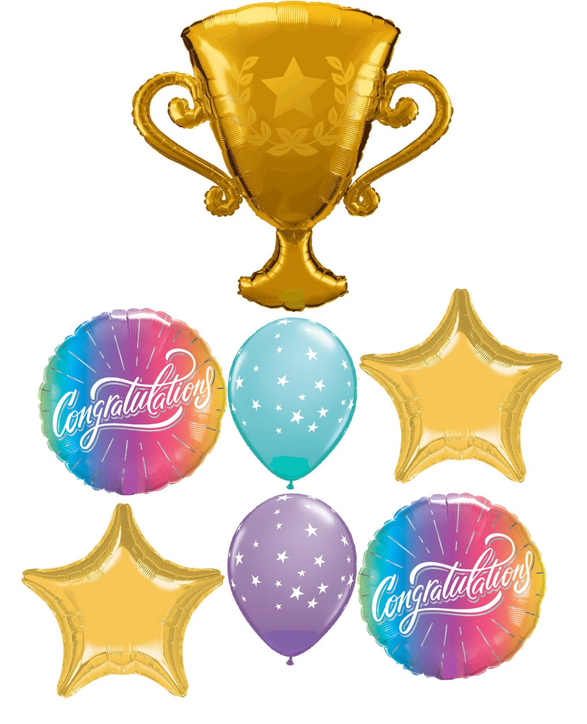 Gold Trophy Congratulations Stars Balloons Bouquet with Helium Weight