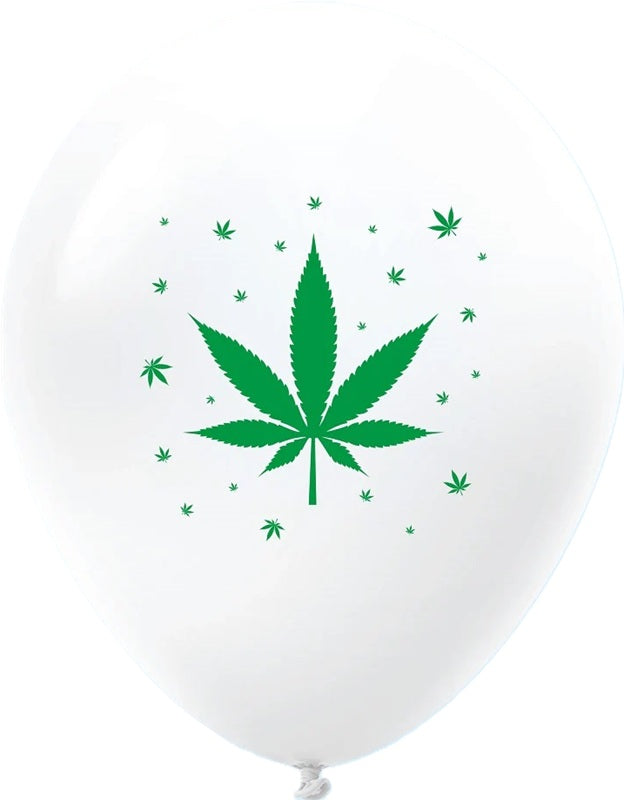 11 inch Marijuana Cannabis Weed Pot White Latex Balloons. Heium filled balloons with ribbon. Latex balloons Hi Float treated to extend float time. WEIGHT NOT INCLUDED