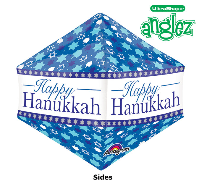 21 inch Happy Hanukkah Balloon. Helium filled with ribbon and weight