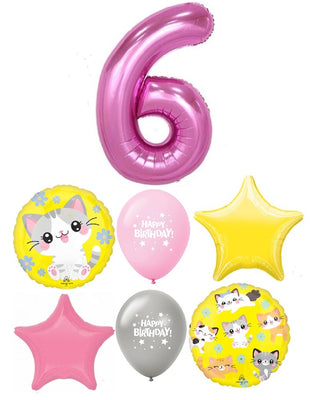 kawaii kitty cat birthday pick age pastel rainbow number helium balloons bouquet party decorations balloon place store delivery delta