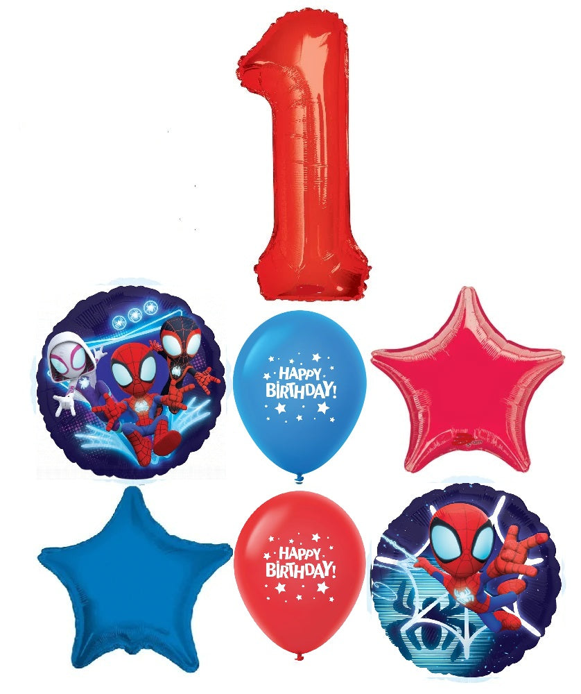 Spidey Amazing Friends Red Number Pick An Age Birthday Balloon Bouquet. Helium filled balloons with ribbon and weight. Latex balloon Hi Float treated to extend float time. PUT THE AGE 1 THROUGH 9 IN NOTES