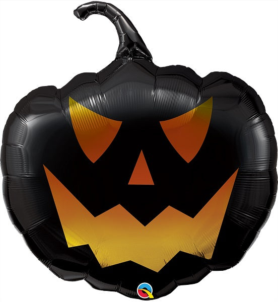 35 inch Halloween Black Jack Pumpkin Balloon. Helium filled with ribbon and weight