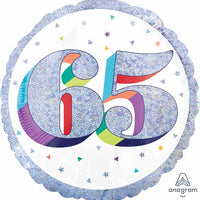 Milestone Rainbow Glitter 65th Birthday Balloon with Helium